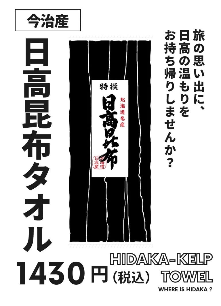 ハッシュタグ #日高昆布タオル で、皆さまの投稿をお待ちしております。